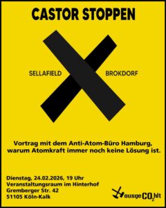 Castor Alarm Frühjahr 2026! Infoveranstaltung 24.02.2026, 19 Uhr, Köln Kalk