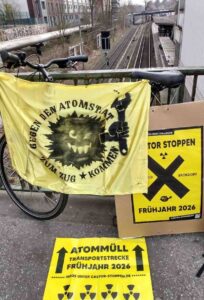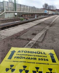Kleine Proteste gab es heute anlässlich eines Aktionstages an einigen Orten entlang der möglichen Castor-Strecken von Jülich nach Ahaus und in Hamburg, wo ein Atommüll-Zug zum AKW Brokdorf fahren könnte. Hintergrund ist, öffentliche Aufmerksamkeit zu erregen. Jeder Atommüll-Transport birgt das Risiko schwerer Unfälle oder Anschläge. Die Behälter rollen in Zwischenlagerhallen, wo sie langfristig nicht bleiben können.