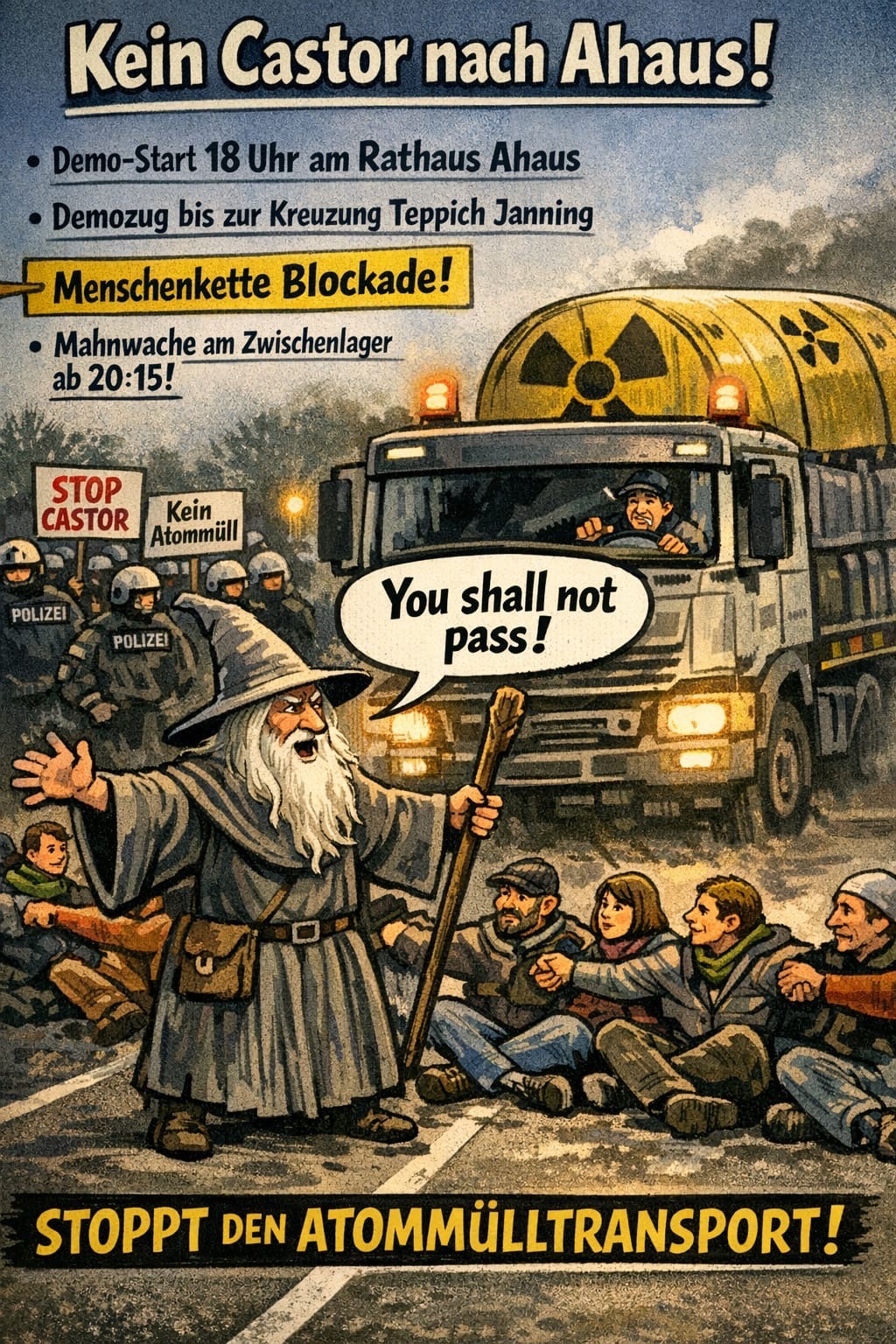 – 18 Uhr: Demo in Ahaus vom Rathaus zur Transportstrecke