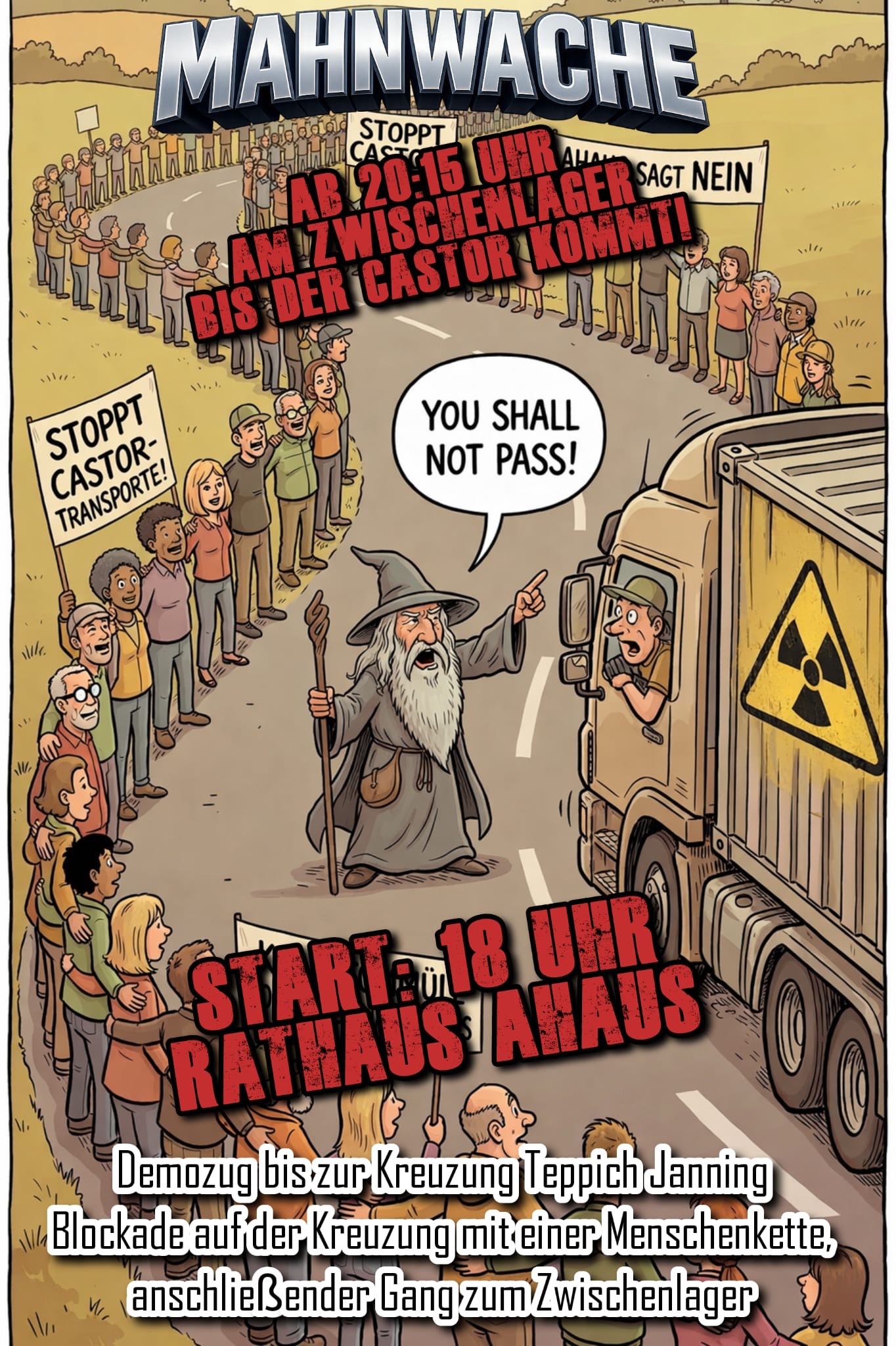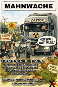 – ab 20 Uhr: Nächtliche Dauer-Mahnwache vor Zwischenlager Ahaus