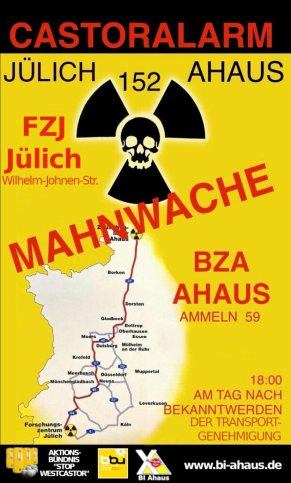 Castor-Lawine nach Ahaus genehmigt - heute Mahnwachen