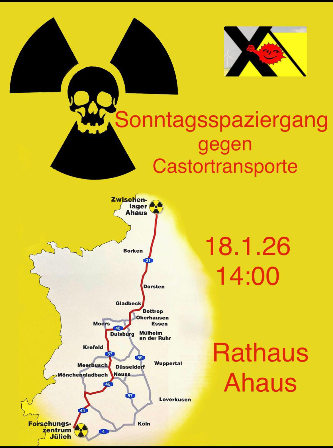 Die nächsten Proteste: 18.1. – Sonntagsspaziergang in Ahaus – 24.1. Castor-Demo ab Autobahn-Rasthof Bottrop.
