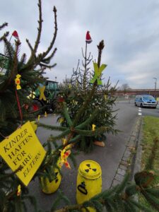 300 Menschen nahmen heute am weihnachtlichen Sonntagsspaziergang am Atommüll-Lager in Ahaus teil. Auch in diesem Jahr konnten die gefährlichen und unsinnigen 152 Atommüll-Castor -Transporte aus Jülich wieder verhindert werden. Das ist auch der Verdienst einer kraftvollen und ausdauernden Anti-Atom-Bewegung!